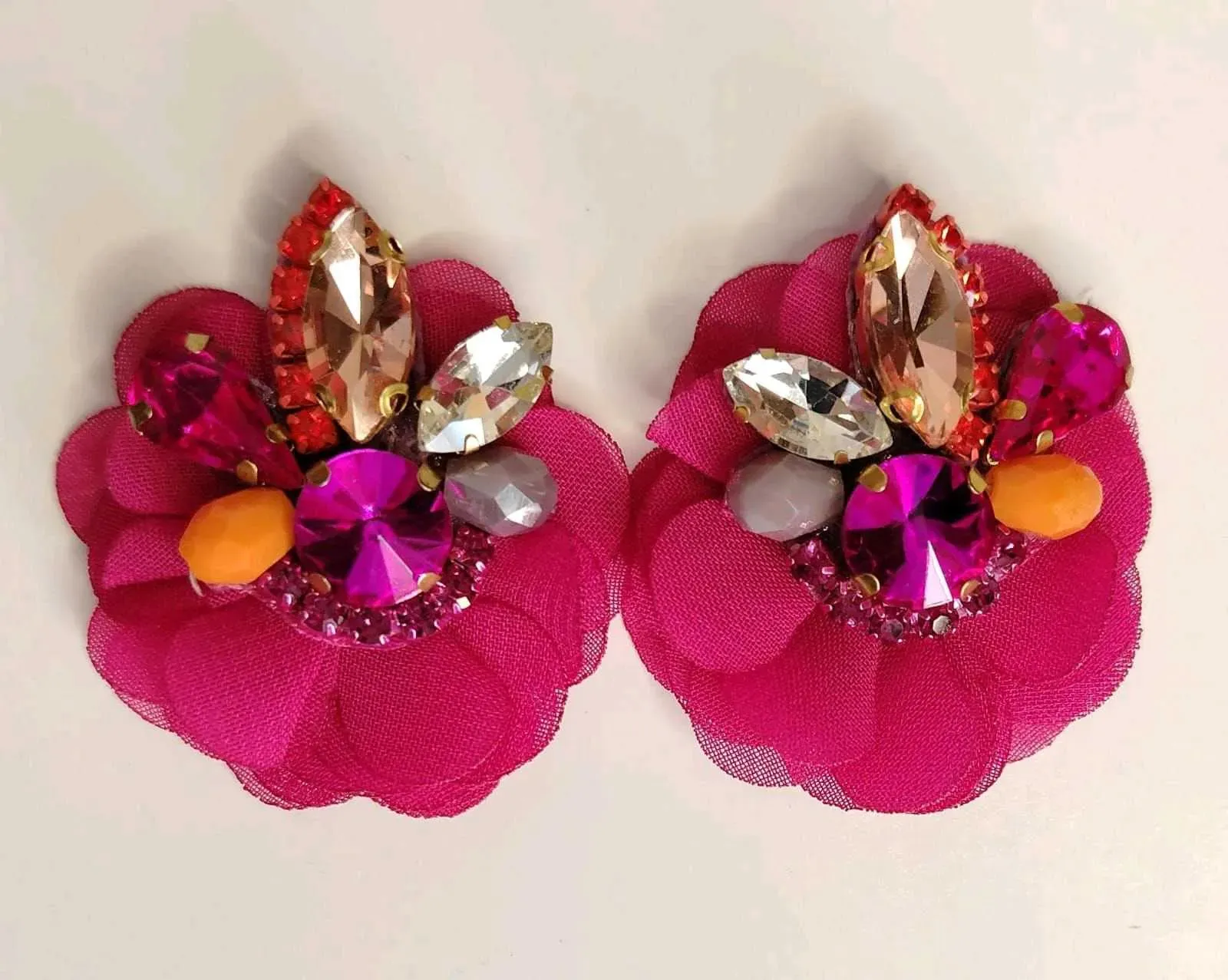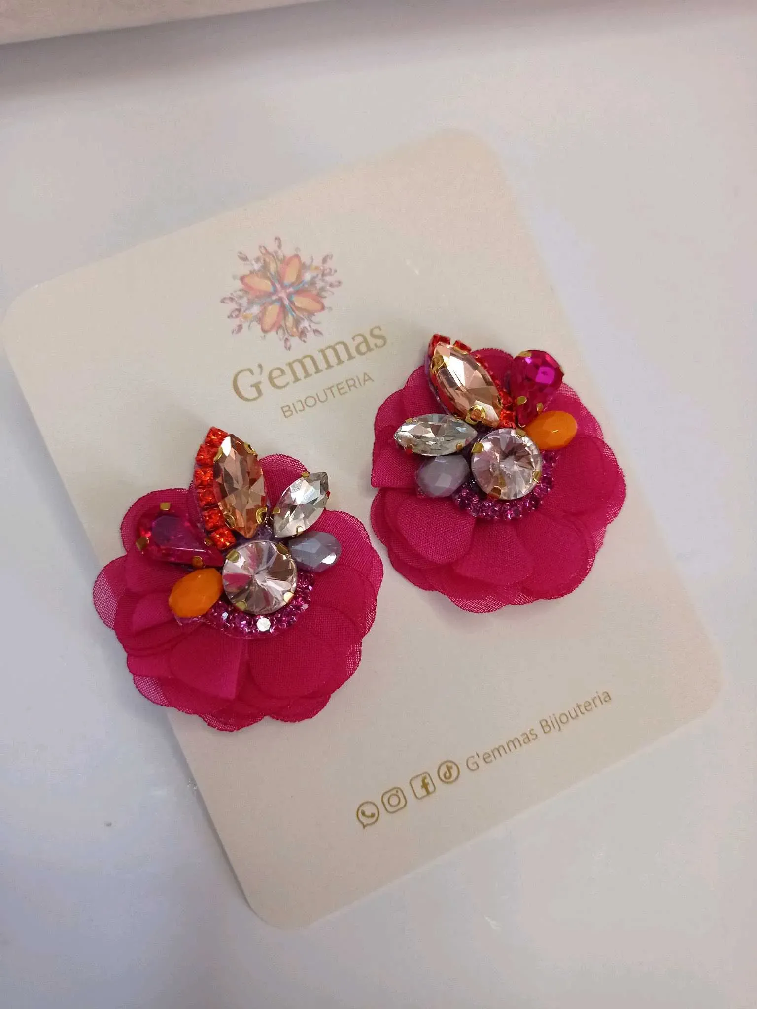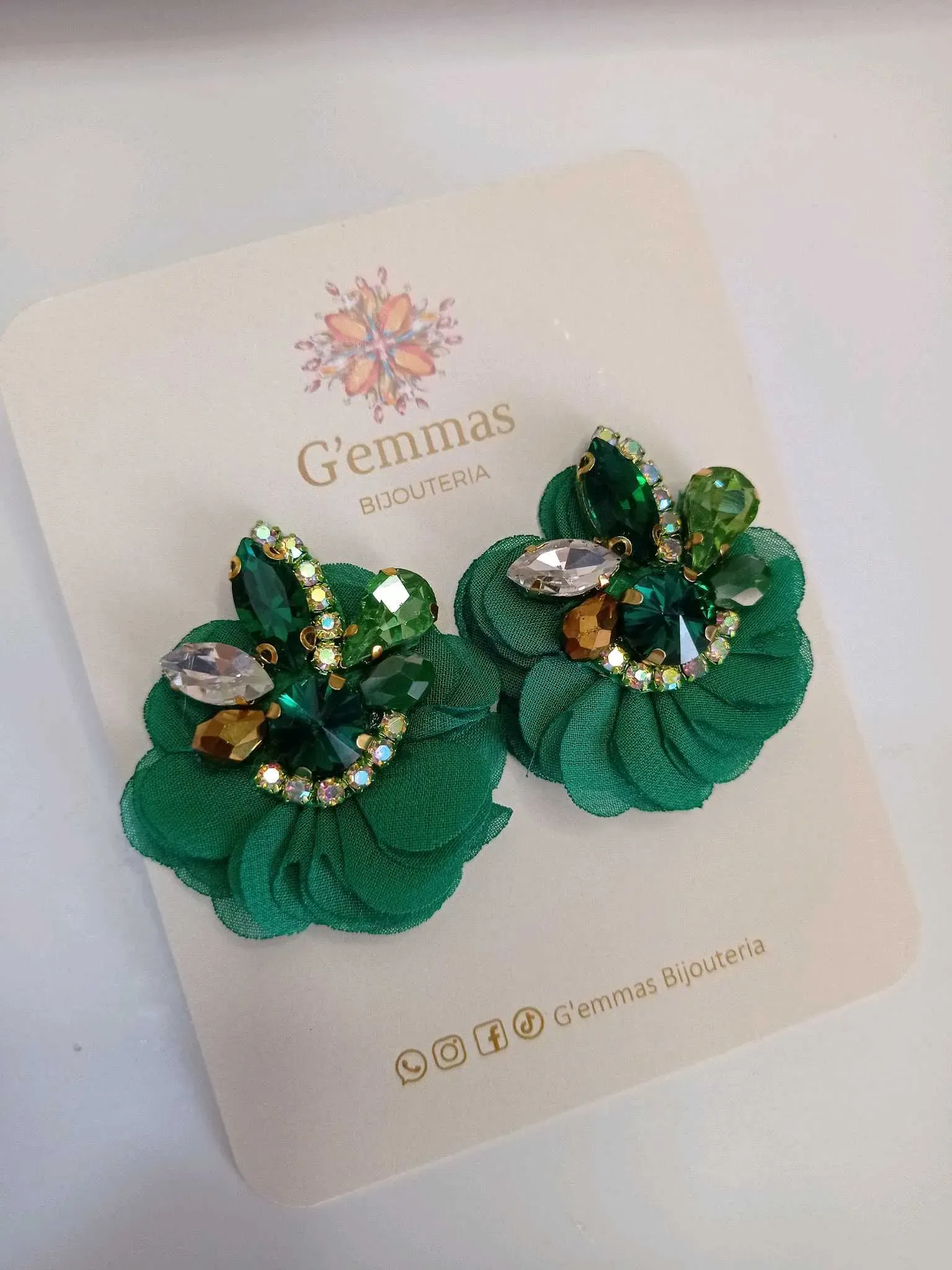 Descubre la elegancia artesanal en nuestros Aretes de Avalorios en vidrio con Detalle de Flor de Organza,con pasante de Acero Inoxidable .Cada par está meticulosamente elaborado a mano, fusionando la delicadeza de los avalorios con la sofisticación de las flores de organza. Estos pequeños tesoros so...