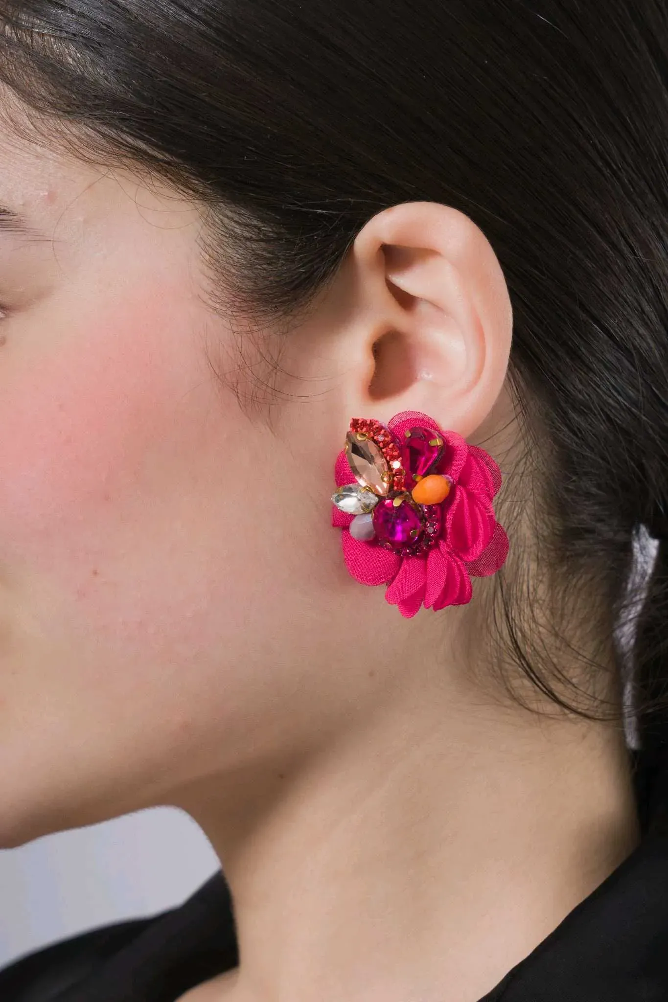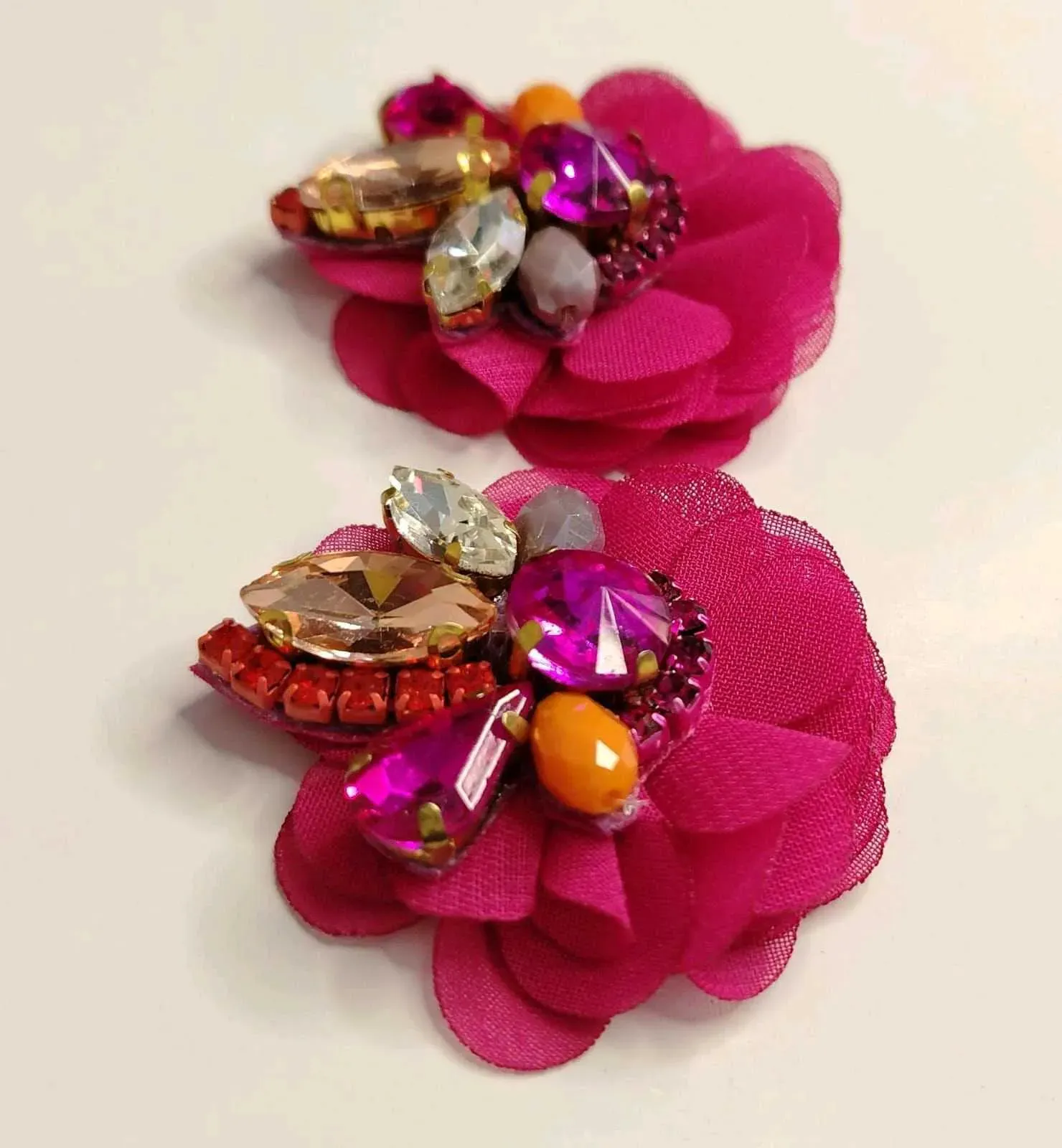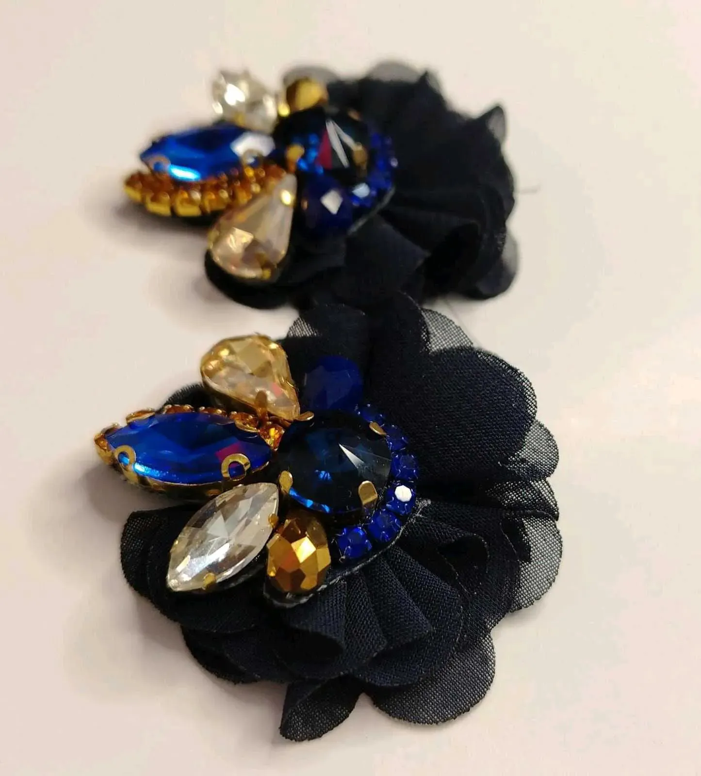 Descubre la elegancia artesanal en nuestros Aretes de Avalorios en vidrio con Detalle de Flor de Organza,con pasante de Acero Inoxidable .Cada par está meticulosamente elaborado a mano, fusionando la delicadeza de los avalorios con la sofisticación de las flores de organza. Estos pequeños tesoros so...